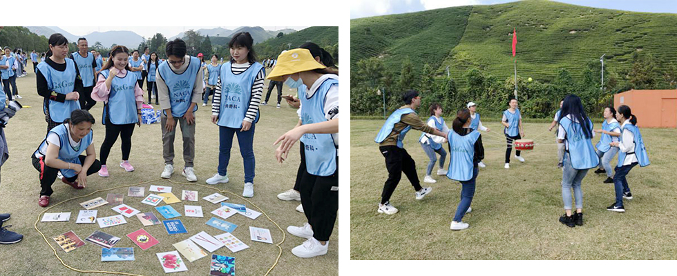 印象最深刻的要数“动力绳圈”项目,需要借助我们全体员工的力量才能完成整场活动,一起拉成圆圈圈,齐心协力,一起挥动手臂、举起我们亲爱的同事,让他们行走在绳尖上,不退缩,不害怕,团结,凝聚,完美展现。